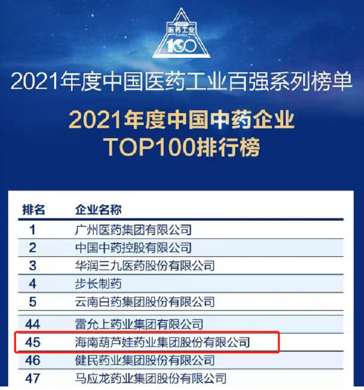 万众瞩目的2021年度中国医药工业百强系列榜单在会上盛大发布,AG贵宾会药业集团百尺竿头更进一步,位列中国中药企业TOP100排行榜第45位,连续第三年入围中国中药企业TOP100百强榜。